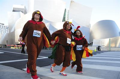 The 13th annual Turkey Trot Los Angeles returns to Downtown Los Angeles on Thanksgiving morning, November 27, 2025. The popular Turkey Day charity run has become a holiday tradition for many Angelenos and helps raise money for those in need throughThe Midnight Mission. Thousands of runners dressed as Thanksgiving turkeys, pilgrims and pies will start and finish in front of historic Los Angeles City Hall. The route will take them around Grand Park, pass the world-famous Disney Concert Hall, the Broad Museum and the Museum of Contemporary Art, and down historic Spring Street, one of the oldest streets in Los Angeles. Turkey Trot Los Angeles has set a goal to raise $100,000 for The Midnight Mission to help those experiencing homelessness in Los Angeles. Participate in the 5k, 10k, or Widdle Wobble for kids and 1-mile Dog Jog for furry companions. Everyone gets a race shirt, sparkly finisher medal, and bib. Registration is now open.